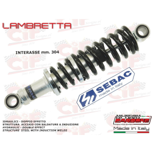 AMMORTIZZATORE POSTERIORE "SEBAC BY HITECH CARBONE" LAMBRETTA LI 3^SERIEAMMORTIZZATORE POSTERIORE VERSIONE ZINCATA (CORPO ZINCATO - MOLLA NERA) (CARBONE COD..6000.100) INTERASSE mm. 304 REAR SHOCK ABSORBER "SEBAC BY HITECH CARBONE" (GALVANIZED BODY - BLACK SPRING) INTERAXIS mm. 304