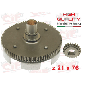 CP.TRASMISSIONE PRIMARIA z 21x76 DENTI DIRITTI SENZA PARASTRAPPO PRIMARY GEAR SET - z 21 x 76 - STRAIGHT COGS - WITHOUT CUSH VESPA 50 V - HP - VESPA 90 ........... VESPA 50 V - FL2 ULTIMO TIPO / LAST TYPE