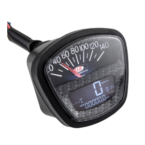 Contagiri /contachilometri SIP 2.0 per Lambretta DL/GP/LI/SX/TV - 140 (km/h/mph) / 14.000 (Umin/rpm) colore quadrante: aspetto carbonio / nero, LCD nero cifre: bianco cornice: nero collegamento: 2,7mm
