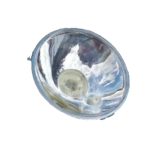 Gruppo ottico anteriore Ø 130 senza ghiera, con portalampada a 3 luci. Vetro liscio in policarbonato per lampade alogene.