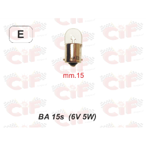 LAMPADINA BA 15s (6V 5W) LUCE POSIZIONE ANTERIORE/POSTERIORE LUCE POSIZIONE ANTERIORE - POSITION LIGHT BULB FOR HEADLIGHT: PIAGGIO VESPA 125-150 (ANNI / YEARS '60) VESPA 90SS - PRIMAVERA - ET3 - 125-150 SUPER (66->)- 125 (62-65) - 150 (59-65) - GS (61-64) GL (59-62)- GT 125 - GL 150 - SPRINT 150 - SPRINT VELOCE 150 - GTR 125- 180SS-RALLY 180-200 LUCE POSIZIONE POSTERIORE (FANALI NON SIEM) - POSITION LIGHT BULB FOR TAILLIGHTS (NOT FOR SIEM TAILLIGHTS): VESPA GTR 125 (70)-SPRINT VELOCE 150 - RALLY 180 (68)