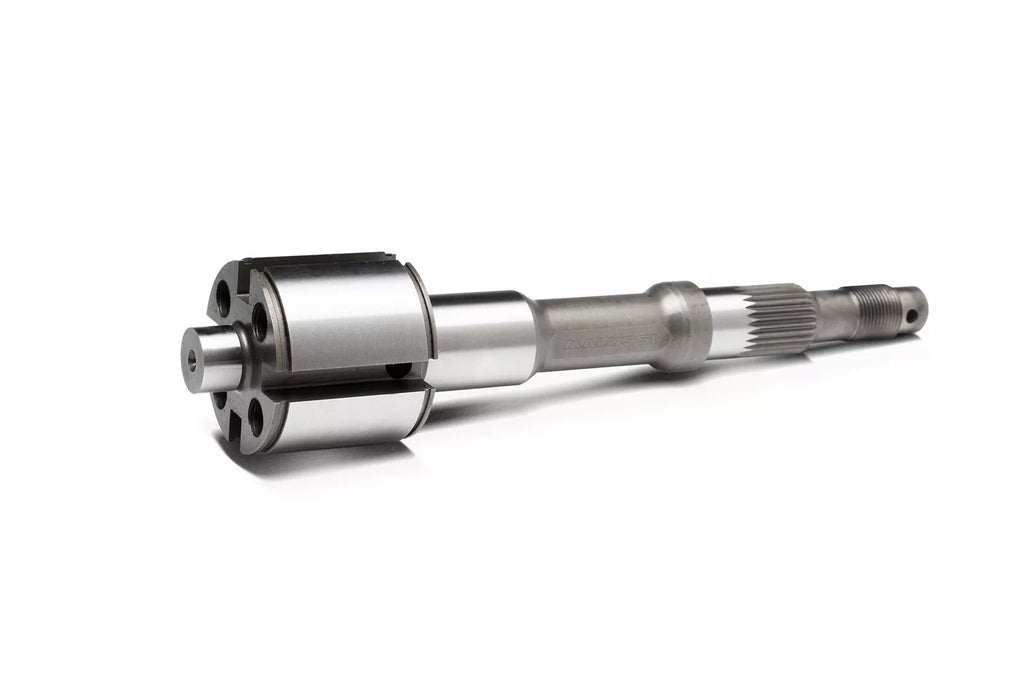 Albero progettato per la massima resistenza diminuendo le sezioni e quindi il peso dove la geometria lo consentiva. Costruiti con acciaio speciale da cementazione, ottenuti con torni di ultima generazione con modelli 3d e tecnologia cad/cam per il massimo controllo della geometria, cementati e rettificati nelle zone in cui è richiesta la massima precisione. I fori di alleggerimento diminuiscono la massa dell’albero con vantaggi in termini di inerzia ed accelerazione. Sono stati creati in zone dove non compromettono la resistenza dell’albero.