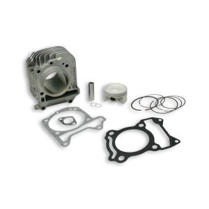 Cilindro Alesaggio: Ø 63 mm Corsa: 58,6 mm Cilindrata: 182,67 Rapporto di compressione: 11,15:1 Materiale: lega primaria di alluminio ad alto tenore di silicio bonificato, canna con riporto di carburi di silicio in una matrice di nichel galvanico e levigatura incrociata con due passaggi di diamanti con tolleranze ristrettissime. Lavorazione: su macchine utensili a controllo numerico ad elevata precisione. Accoppiamenti cilindro pistone in selezione di 0,05 mm. Superfici di scambio termico ricalcolate e maggiorate. Pistone Super compatto a tre segmenti. Materiale: lega speciale primaria di alluminio al silicio a bassa dilatazione termica con riporto di stagno sulle pareti di scorrimento. Lavorazione su macchine a controllo numerico. Alleggeriti e rinforzati. Superfici di scambio termico maggiorate. Segmenti Speciali ad alto scorrimento e ad altissimaresistenza meccanica. I° segmento compressione in acciaio nitrurato e cromato. II° segmento in ghisa speciale. Raschia olio in tre pezzi in acciaio speciale legato e cromato. PIAGGIO LIBERTY 3V 125 ie 4T euro 3 PIAGGIO LIBERTY 3V 150 ie 4T euro 3 (M738M) VESPA LX 3V 125 ie 4T euro 3 2012-> (M687M) VESPA LX 3V 150 ie 4T euro 3 2012-> (M688M) VESPA Primavera 3V 125 ie 4T euro 3 2014-> (M811M) VESPA Primavera 3V 150 ie 4T euro 3 2014-> (M812M) VESPA Sprint 3V 125 ie 4T euro 3 2014->2015 VESPA Sprint 3V 150 ie 4T euro 3 2014-> PIAGGIO LIBERTY iGet ABS 125 ie 4T euro 3 (M893M) PIAGGIO LIBERTY iGet 125 ie 4T euro 4 2017->2020 PIAGGIO LIBERTY iGet ABS 150 ie 4T euro 3 PIAGGIO LIBERTY iGet 150 ie 4T euro 4 2017->2020 PIAGGIO LIBERTY S iGet 125 ie 4T euro 4 2017->2020 PIAGGIO LIBERTY S iGet 150 ie 4T euro 4 2017->2020 VESPA Primavera iGet 125 ie 4T euro 4 2016->2020 VESPA Primavera iGet 150 ie 4T euro 4 2016->2020 VESPA Sprint iGet 125 ie 4T euro 4 2016->2020 (MA13M) VESPA Sprint iGet 150 ie 4T euro 4 2016->2020 PIAGGIO LIBERTY iGet 125 ie 4T euro 5 2021-> (MD41M) PIAGGIO LIBERTY S iGet 125 ie 4T euro 5 2021-> (MD41M) PIAGGIO LIBERTY iGet 150 ie 4T euro 5 2021-> (MD42M) PIAGGIO LIBERTY S iGet 150 ie 4T euro 5 2021-> (M546M) VESPA Primavera iGet 125 ie 4T euro 5 2021-> (MD11M) VESPA Primavera iGet 150 ie 4T euro 5 2021-> VESPA Sprint iGet 125 ie 4T euro 5 2021-> (MD11M) VESPA Sprint iGet 150 ie 4T euro 5 2021->