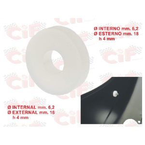 DISTANZIALE (Ø INT.6,2-EST.18 x H 4 mm) PER FISSAGGIO LATERALE PARAFANGO VESPA 50-125 (67-82) SPACER (Ø INTERNAL 6,2 - EXTERNAL 18 x H 4 mm) FOR FIXING LATERAL MUDGUARD VESPA 50-125 (67-82)
