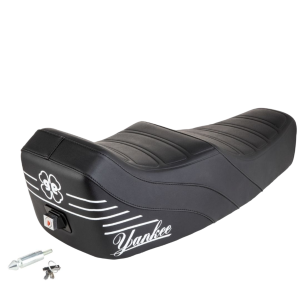 Questo classico di design, prodotto in origine dal saddler italiano GUILARI, è ora nuovamente disponibile con una produzione completamente concessa in licenza ed è "Made in Italy" della NISA. Il sedile anatomico a due posti " Yankee" non solo consente una guida confortevole, ma è anche un forte richiamo alla moda degli scooter negli anni Ottanta e Novanta. Grazie alla maggiore area di seduta, questi sedili sono ideali per trasportare passeggeri in poppa e l'ampio rivestimento offre il massimo comfort per lunghe distanze. La superficie di seduta, con una posizione leggermente rialzata, è ergonomicamente formata e offre questo sedile da turismo con il suo aspetto unico. Li abbiamo disponibili per tutti i modelli Vespa largeframe e smallframe!
