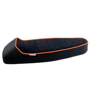 Sella sportiva SPORT RACING "Summer Fluo" per Vespa 50-125/PV/ET3 nero trapuntato / lato zigrinato bordino: ARANCIONE FLUO